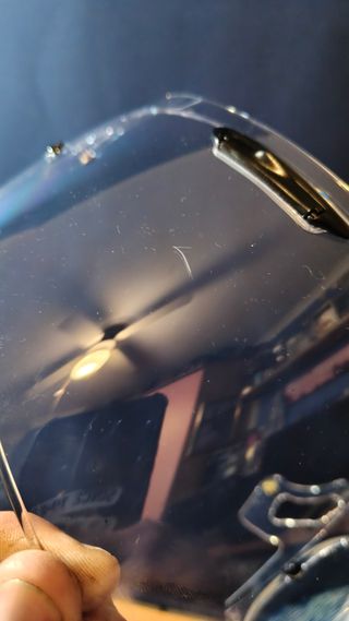 Vendo dos visores para casco Arai RX-7V EVO. Están en perfecto estado, aunque uno presenta algunas leves marcas superficiales. - Incluye dos visores transparentes. - Modelo compatible con Arai RX-7V EVO. - Se aprecian algunas imperfecciones mínimas en uno de los visores.