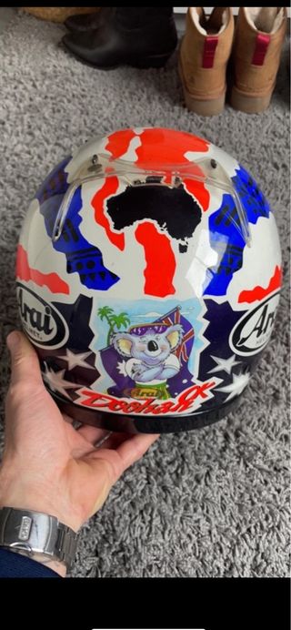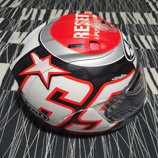 Prácticamente nuevo!!! talla M. Se usó literalmente 2 salidas pero está impecable. Sería volverlo a estrenar. Lo más alto de gama y el último modelo de Arai. Modelo espectacular de Nicky Hayden. No mareantes ni regateadores!