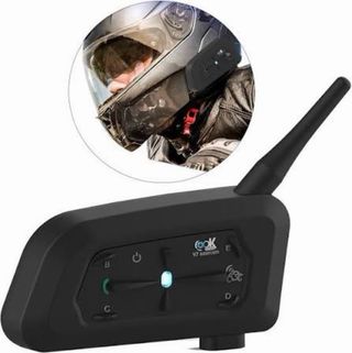Intercomunicador para casco de moto Ejeas V6 Pro. Permite comunicación full duplex. - Distancia máxima de 1200m. - Conexión con teléfono y recepción automática de llamadas. - Acceso a Aux, música y navegación GPS.