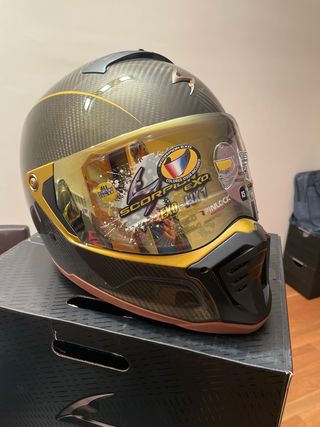 casco de alta gama de Scorpion Modelo Exo HX1 Carbon SE Black -Gold incorpora dos viseras y pinlock todo a. estrenar OJO NO lleva instlalado INTERCOMUNiCADOR Talla XS equivale a una S