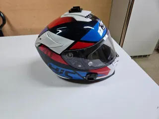 Casco integral HJC RPHA 70 con un diseño deportivo y aerodinámico. - Combinación de colores negro, azul, rojo y blanco. - Visera clara. - Visor Solar plegable - Cierre de doble anilla. - Pinlock incorporado - Talla L (59-60cm) - Se vende sin instalacion intercomunicador - Con funda de transporte