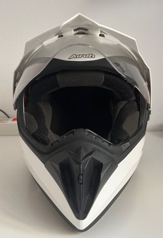casco en perfecto estado Airoh s5 blanco en talla S, con pantalla retractil solar. Usado muy poco. Incluye instalacion de intercomunicador, aunque se puede quitar. Vinilo en la zona trasera pero se puede despegar facilmente sin qie quede huella. Sin rayajos ni golpes. Solo venta en mano en Malaga, Cordoba o Marmolejo.