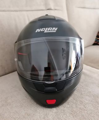 Casco de protección para motocicleta de la marca Nolan, modelo N91 y de talla S, es abatible con doble homologacion P/J para poder conducir con él abierto (J) o cerrado (P), tecla para bloquear la mentonera abierta, preparado para la instalación del intercomunicador N-Com S Series, acolchado interior recién colocado, funda original y en perfectas condiciones de uso. Nunca ha tenido golpes ni accidentes, se le han quitado las pegatinas no originales y está como nuevo.