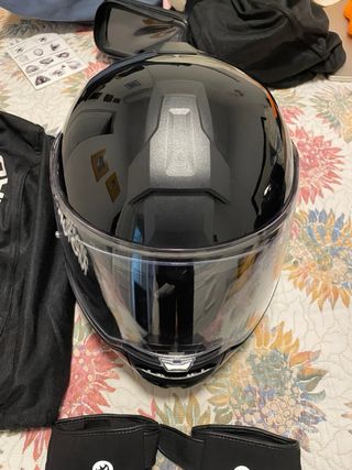Casco Shoei nxr dystopía, talla L con poco uso y en perfectas condiciones para seguir usándose. Se incluye intercomunicador Midland, de la calidad correspondiente a la del casco. No ofertas absurdas por favor.