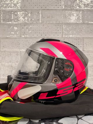 Casco Moto LS2 Mujer Gris y Rosa
