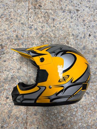 Vendo casco de motocross/enduro talla S en muy buen estado. Diseño en color amarillo con detalles grises y blancos, muy visible y con estilo deportivo. Características: - Talla: S - Tipo: Motocross / Enduro - Color llamativo y fácil de ver en pista o carretera - Interior acolchado y cómodo - Visera amplia, ideal para sol y salpicaduras - Carcasa ligera y resistente - Bien cuidado y sin golpes ni caídas. Estado: El casco está en muy buen estado, con ligeras señales normales de uso (ver fotos). No tiene impactos y nunca ha sufrido caídas. Motivo de venta: ya no lo utilizo. Entrega en mano.