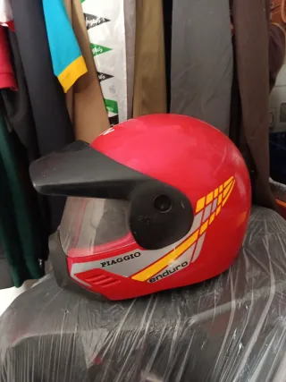 Casco AGV vintage para moto de enduro, con diseño Piaggio. Moto Café racer , Yamaha, derbi, honda , ossa, vespa , Suzuki, Kawasaki , Ducati - Color rojo con detalles plateados y amarillos. - Visera negra. - Logo AGV en la parte superior.