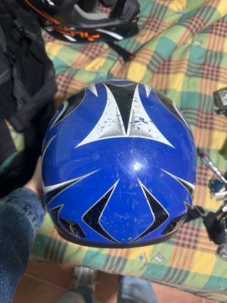 Casco de motocross y enduro muy poco uso casi como nuevo regalo gafas. - Diseño aerodinámico. - Visera ajustable. - Incluye gafas de motocross. - Color blanco, azul y naranja.
