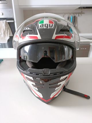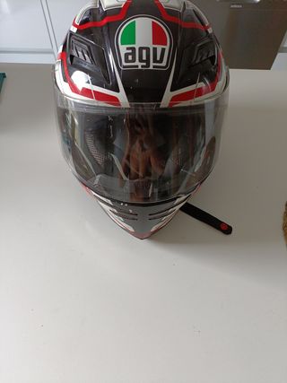 Casco integral AGV K6 con un diseño deportivo en rojo y negro. - Calota exterior aerodinámica. - Visera clara con tratamiento antivaho. - Interior cómodo y extraíble. - Cierre de doble anilla. Regalo kit de mantenimiento Muy poco uso y unas pequeñas marcas de una caída al suelo en parado al apoyar lo en el depósito al sacármelo.