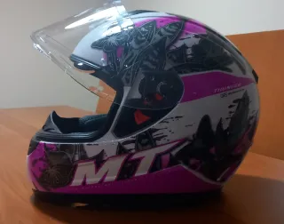 Vendo casco integral MT Helmets, talla S. Ideal para ciudad y carretera, perfecto como casco principal o para acompañante. • Marca: MT Helmets • Tipo: integral • Talla: S • Colores: blanco, rosa y morado • Pantalla transparente con buen campo de visión • Interior acolchado, muy cómodo Está en buen estado, con ligeras marcas de uso en la pantalla y la calota, sin golpes ni caídas fuertes (solo uso normal). Se puede ver y probar sin compromiso. Lo vendo porque ya no tengo moto. Entrega en mano en Madrid.