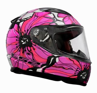 Casco integral moto rosa floral