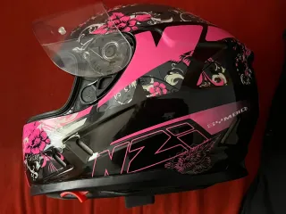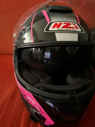 Casco integral NZI con un diseño llamativo en rosa y negro. - Prácticamente nuevo, 4 o 5 usos. - Talla XS. - Cierre micro métrico. - Diseño con detalles geométricos en rosa. - Acabado exterior en gris y negro. - Visera transparente apta para PINLOCK. - Pequeña rascada por roce al llevarlo en la mano (no afecta). - En estado de limpieza perfecta. - Bolsa de transporte y protección incluida.