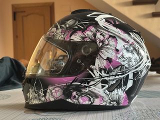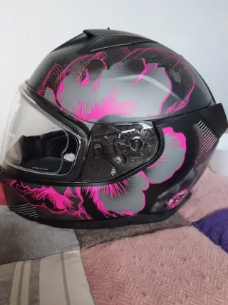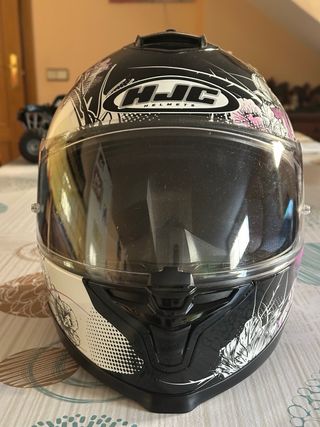 Casco integral HJC IS-17 talla S. - Diseño floral en tonos rosas y blancos sobre fondo negro. - Visera transparente. - Cierre de seguridad. - Muy poco uso, en perfecto estado