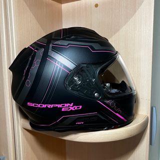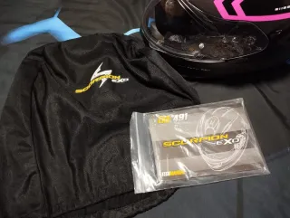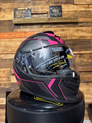 Casco integral Scorpion Exo-1400 Evo Air en color negro con detalles en rosa. Incluye visor Pinlock. - Talla S. - Modelo Exo-1400 Evo Air. - Incluye manual de usuario. Negociable