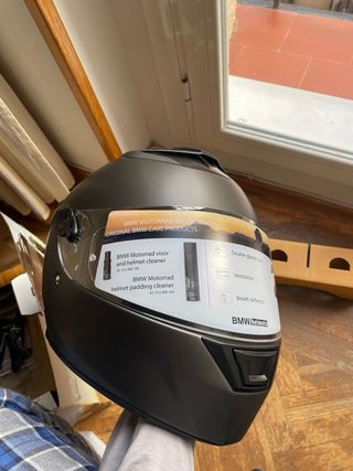 Casco integral BMW System 7 EVO en talla L. Diseño moderno y funcional. Lo vendo porque me he encaprichado de otro casco. pero para comprarlo necesito sacar lo que pido. Así que o lo vendo en lo que pone o no lo vendo. - Color blanco con detalles en gris y azul marino. - Visera transparente. - Cierre de seguridad. - Visera para el sol.