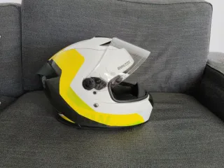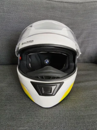 Casco integral BMW en talla L, con un diseño moderno en blanco, amarillo y negro. - Visera transparente con pantalla accionable de color. FALTA pantalla pin lock interior. - Cierre de seguridad. - Interior muy cómodo. - Super silencioso. - Es un casco de 500 € - Muy buen estado. -Solo la funda vale más de 20 €.
