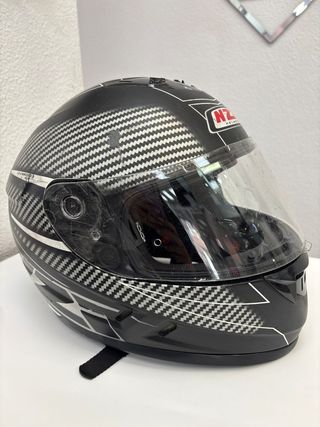 Casco integral NZI RCV con acabado en fibra de carbono. Talla L. - Calota fabricada fibra carbono. - Funda de transporte - Visera oscura y visea clara - Cierre de doble anilla. - Usado con leves marcas