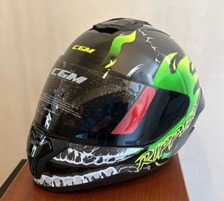 Casco Integral marca: CGM modelo: 330 gráfica RIPPER, en color Verde-amarillo Flúor y Negro mate. Talla: M, Completamente nuevo sin ni un uso, y con su funda, todas sus etiquetas y caja original. Es un Casco fabricado en policarbonato avanzado, que cumple con la nueva Homologación 22.06. Ademas de la pantalla transparente, incluyo de regalo una pantalla ahumada. El interior es lavable y desmontable, hipoalergénico fabricado en ExtraCool (Coolmax) y su precio de Tarifa es de 105€+35€ la pantalla =140€. Muy Buena oportunidad para estrenar a precio de usado. Vendo todos estos cascos nuevos, porque soy el comercial de la marca.