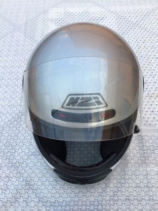 Casco integral de la marca NZI modelo EURUS en talla M color plateado. Viene con una funda de tela. No hago envíos