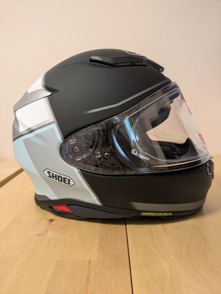 Casco integral Shoei NXR2 Yonder talla M, con un diseño moderno y deportivo. - Color principal negro mate con detalles en blanco, gris y azul claro. - Visera transparente con sistema Pinlock. - Cierre de seguridad de doble D. Está como nuevo. Apenas sin uso. Por supuesto, sin el más mínimo golpe ni arañazo.