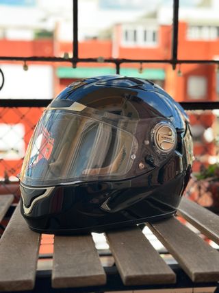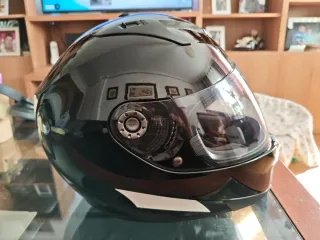 Casco de moto integral en color negro brillante. Cuenta con visor transparente y un diseño aerodinámico. Talla M. - Visor con protección. - Cierre de seguridad. - Ventilación integrada. Muy cuidado. Apenas lo utilicé unos meses.