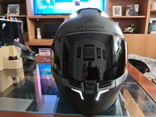 Casco integral Shark Ridill en acabado negro brillante. Diseñado para ofrecer protección y comodidad. - Calota exterior aerodinámica. - Visera clara. - Sistema de ventilación integrado. Se vende por comprar casco nuevo. Se ha usado a diario durante un par de años, por lo tanto es un casco con bastante uso, pero bien cuidado. La visera exterior no es la transparente original, es un un pelín ahumada. Tiene un pequeño arañazo en la parte superior trasera, se aprecia en una foto. Por lo demás, un casco funcional. Solo venta en mano.