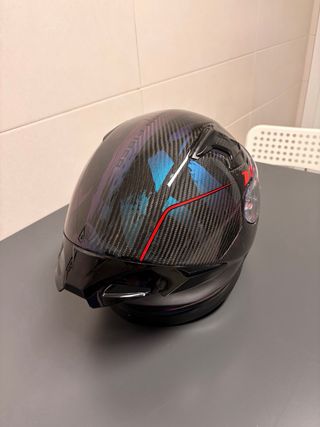 Casco de moto integral con acabado en fibra de carbono. - Diseño deportivo y aerodinámico. - Visera transparente. - Interior cómodo.