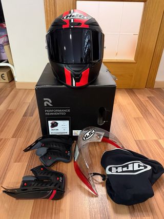 Casco integral HJC RPHA 1 en color negro con detalles en rojo. - Es una talla M, pero se incluyen interiores más pequeños por lo que corresponde a talla S. - Incluye alerón trasero a estrenar y todas sus fundas - Visera oscura adicional. - Bolsa de tela HJC. - Interior desmontable.