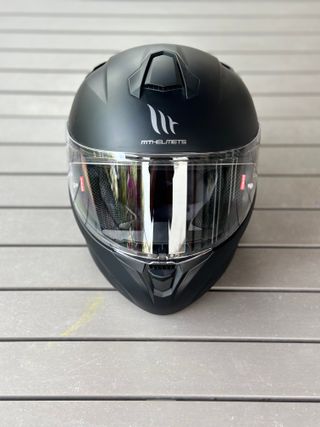 Casco integral para moto de la marca MT, fabricado en fibra de vidrio. - Vendo dos cascos. - Talla S y M. - Como nuevos. - Pantalla incolora de regalo. - Interior cómodo. Cierre micrométrico. - Funda original de transporte. - Precio por unidad.