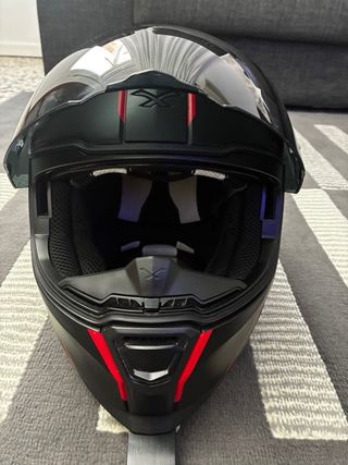 Casco integral Nexx SX.100R – Negro mate con detalles en rojo. Integral con diseño deportivo y moderno, ideal tanto para uso diario como para rutas largas. Características: •Casco integral para máxima protección. •Diseño aerodinámico y agresivo. •Calota ligera y resistente. •Visera amplia que ofrece muy buena visibilidad. •Visera solar interior (muy práctica para días soleados). •Visera exterior transparente y oscura. •Cierre micrométrico, cómodo y seguro. •Preparado para Pinlock (antivaho). •Ventilaciones bien integradas para una correcta circulación del aire. •Interior acolchado, cómodo y desmontable para facilitar la limpieza.