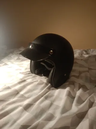 Casco negro para motos del tipo custom. Lo dejo con las pegatinas. TALLA M Acepto cambios por casco integral negro de la misma talla. - Visera. - Cierre de correas. --precio negociable