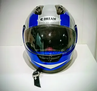 Casco de moto integral con un diseño deportivo y llamativo. - Color azul, plateado y negro. - Visera transparente. - Cierre de seguridad. Ideal para chica, una sola usuaria. El interior está perfecto. Ha tenido poco uso porque solo se ha utilizado para trayectos largos, tengo otro que no es integral.