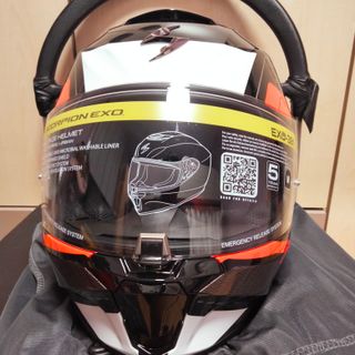 Casco Moto Integral de la marca Scorpion modelo Exo-391 Leo Negro Rojo de talla "M" , nuevo con su caja original. Calota de Policarbonato Pantalla Clara Sistema de pantalla Ellip-Tec Acolchados Kwikwick antialérgico, desmontable y lavables Cierre micrómetrico Homologación 22.06