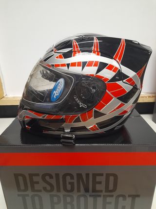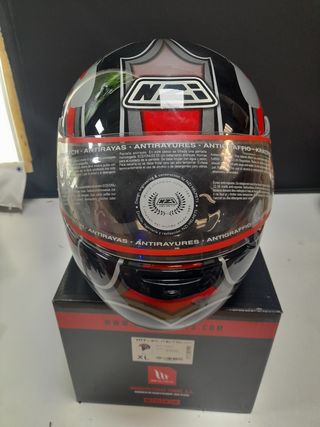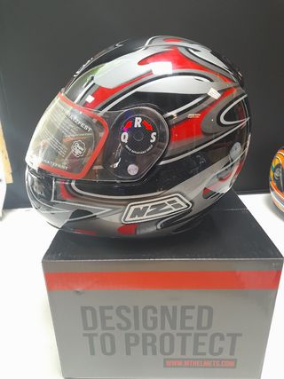 Casco integral NZI Wild Wolf en talla M. Diseño deportivo y moderno. - Color blanco, negro y rojo. - Visera oscura. - Cierre de seguridad.