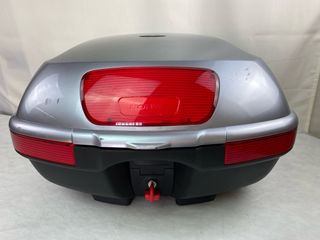 Baúl trasero Shad Touring para moto, en color negro. Capacidad 42 litros capacidad para dos cascos integrales Está en buen estado, con alguna marca superficial como se puede ver en las fotos le incorpore bisagras más fuertes ya que las que llevaba son de plástico y se partieron.con cerradura con dos llaves plataforma para enganchar en la moto y plataforma superior para poder llevar otro objeto también incorpora respaldo para la espalda para segundo conductor - Marca: Shad - Modelo: Touring - Color: Negro - Incluye parrilla supe