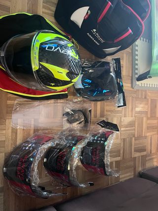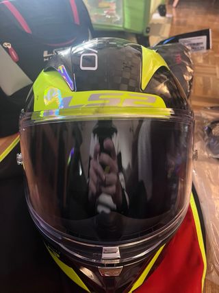 Casco integral LS2 Arrow C Evo Carbon en talla S. Diseño deportivo y ligero. Está en muy buen estado (menos de dos años de uso). Tiene un desperfecto en la pintura que se ve en las fotos al lado de la visera (NO TIENE GOLPE NI CAÍDA). Incluye unos interiores nuevos, pinlock, tearoff, una visera ahumada, otra de iridio oro, otra de iridio azul además de la transparente y una mentonera usada (la cambié porque se cuarteó). Incluye su funda, bolsa de transporte y soporte hinchable