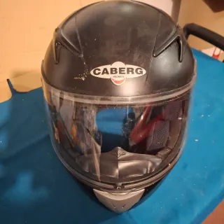 Casco de moto integral de la marca CABERG.Tiene algunos roces y marcas del uso, parte de la piel esta abierta. SE VENDE TAL CUAL ESTA, ver detalles foto - Color negro. - Visera transparente. - Interior acolchado.
