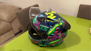 Casco integral LS2 FF323 Arrow R Evo Neon, esta usado con marcas del día a día. Se vende al no tener ya moto. - Talla M - Casco de fibra de vidrio. - Visera oscura. - Visera clara con pinlock antivaho. - Funda de transporte