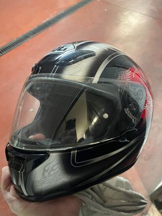 Casco integral Shoei XR-1000 con diseño en negro y rojo. Talla S - Diseño con motivos de dragón y llamas. - Visera transparente. - Cierre de doble anilla.