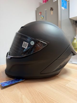 Nuevo a estrenar en tienda en Madrid. Enviamos a toda España y se puede comprar en tienda en Madrid. Tallas L y XL. Casco de moto integral con gafas interiores ahumadas y pinlock. Su PVP es 150€, precio rebajado 89€. Pagando en efectivo, te entregamos un vale de descuento 9€ para la próxima compra mínima de 49€.