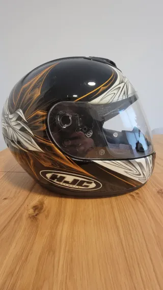 Casco de moto integral HJC FS-11 con u diseño llamativo en negro y detalles en naranja y blanco. Talla S. Vendo por no usar. Está prácticamente nuevo. Entrega y pago en mano. No trueque. *Características: - Calota exterior en fibra de vidrio. - Pantalla clara antivaho con protección UV. - Sistema de cambio de pantalla RapidFire. - Visor solar interior antirayas fácilmente accionable desde la parte superior. - Sistema de ventilación con entradas de aire frontales y extractores trasero