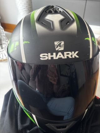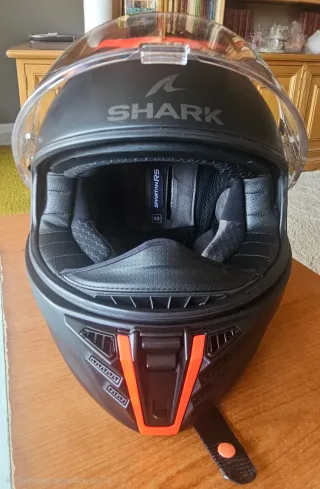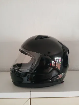 Casco integral de moto de la marca Shark. Diseño deportivo y seguro. Lo he usado pero no tiene golpes. - Color negro brillante. - Visera transparente. - Interior acolchado.