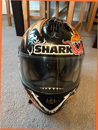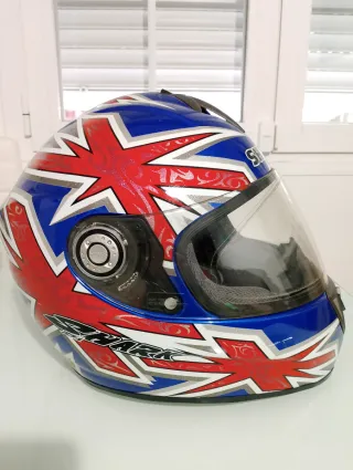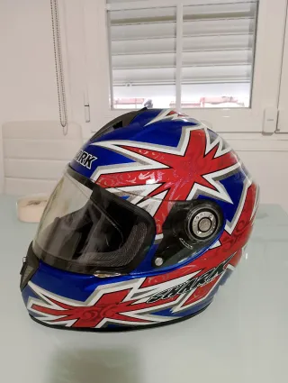 Casco integral Shark Gregorio La villa. - Talla M 58cm. - Diseño llamativo con la bandera británica. - Visera clara. - Interior acolchado. - pinlock instalado.