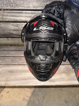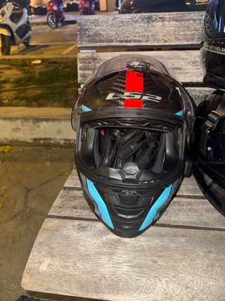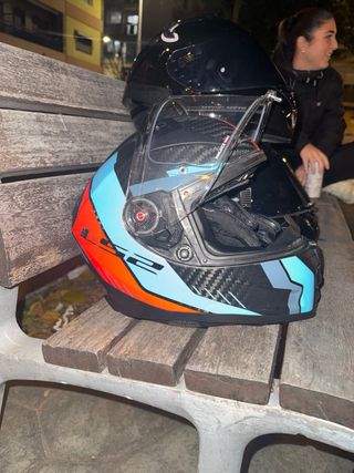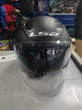 Casco integral LS2 en color negro. Diseño moderno y seguro. - Visera transparente. - Cierre de seguridad. - Visera para el sol. - Poco uso. - Talla S. Tiene algunas marcas del transporte.