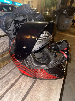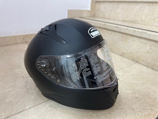 Casco integral CGM 311 casi nuevo, talla S y doble visera. Lo compre en noviembre del 2025 y no lo he usado apenas. Me salió una oferta por 100€ y lo compre, pero me quita espacio y ya tengo otro. Tiene dos rayones que se ven en las fotos, en navidades mi hermano lo cogió y entrando al ascensor le dio un golpe en la puerta... a parte de eso esta perfecto. No esta puesta la hebilla original pero se la pongo sin problema. Hay viseras originales por 20/25€ claras o ahumadas por si interesa. Aun tengo los manuales, caja y un protector contra el vaho por si interesa. Cualquier duda no dudes en preguntarme, gracias.