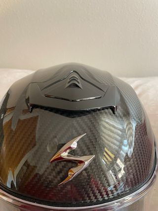 Casco integral Scorpion Exo-R1 Evo con acabado en carbono - Diseño integral y deportivo - Calota exterior de fibra de carbono - Sistema de ventilación Aero-Tuned - Interior desmontable y lavable - Sistema AirFit - Sistema de extracción de emergencia - Cierre doble hebilla - Homologación ECE 22-06 - Visera transparente - Incluye recambio de visera ahumada para el sol - Incluye Pinlock para evitar el vaho en la visera - Talla xs Lo he usado una vez, no tiene golpes ni rasguños. Lo vendo porque me está un poco grande.