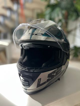 Casco de moto integral de la marca LS2 talla M - Color blanco. - Visera transparente + visera oscura interior. - Diseño deportivo. - Tiene marcas de uso pero mucha vida útil por delante.