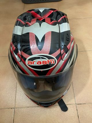 Casco de motocicleta infantil Arashi para niño. Talla 53, con muy poco uso. Como se aprecia en las fotos tiene pegado un lateral pero es un plástico decorativo, no afecta al casco. Totalmente homologado.