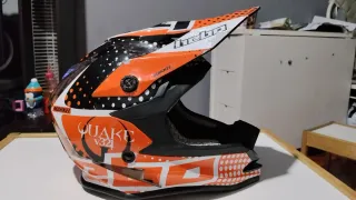 Casco de moto marca axis con un diseño llamativo y colorido. Está muy bien poco uso - Estilo infantil. - Combinación de colores azul y naranja.