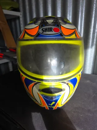 Casco de moto SHIRO con un diseño deportivo y llamativo. Presenta una combinación de colores blanco, negro, rojo, naranja y amarillo. - Diseño con gráficos dinámicos. - Visera transparente. - Marca SHIRO visible. - nuevo nunca usado - talla L 59-60 cm me lo regalaron cuando compré mi moto y nunca lo usé